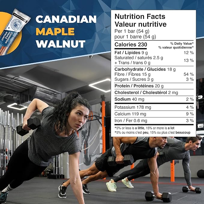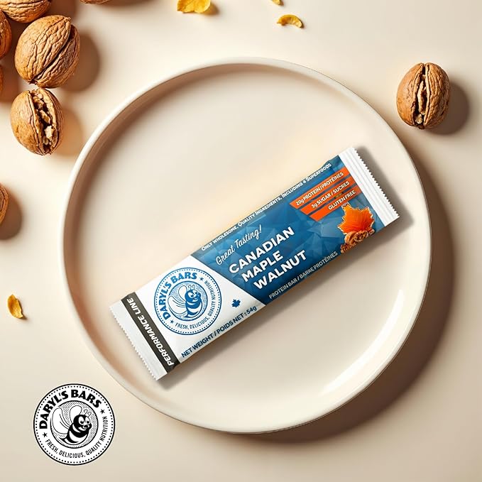 With 20g of high-quality whey protein and only 3g of sugar, our Canadian Maple Walnut protein bars deliver the goods, along with a subtle hint of real Canadian maple syrup that authentically captures this rich, complex flavour from the Great White North.