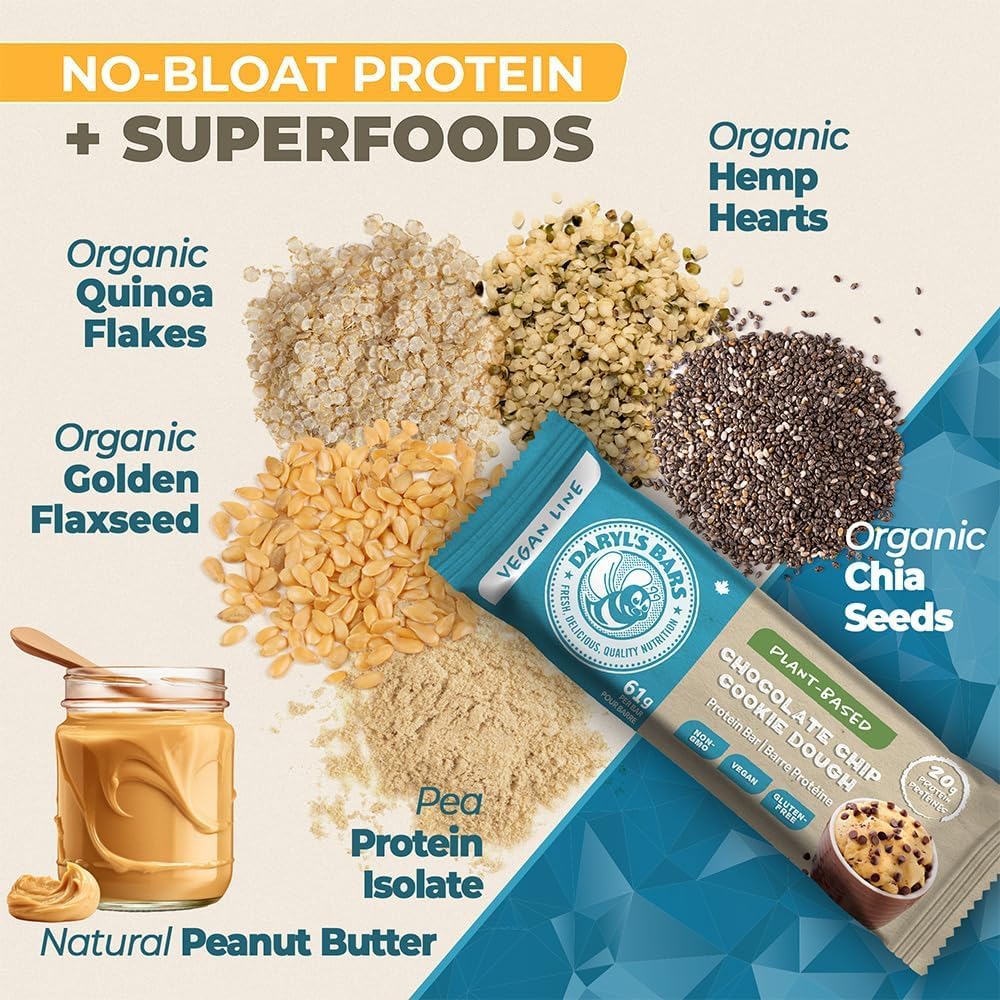 With 20g of high-quality, plant-based protein and 15g of fibre, our vegan Chocolate Chip Cookie Dough protein bars go beyond other “snack” bars, delivering a complete meal replacement, along with the sweet, buttery baked treat.